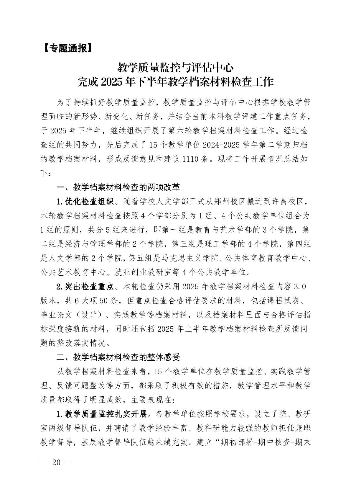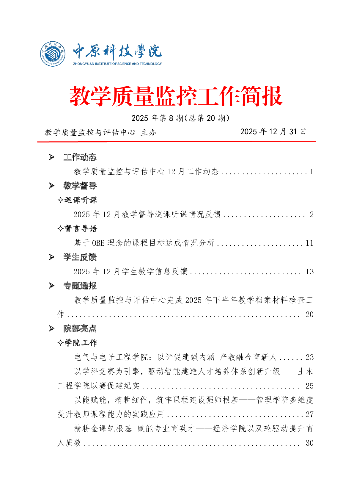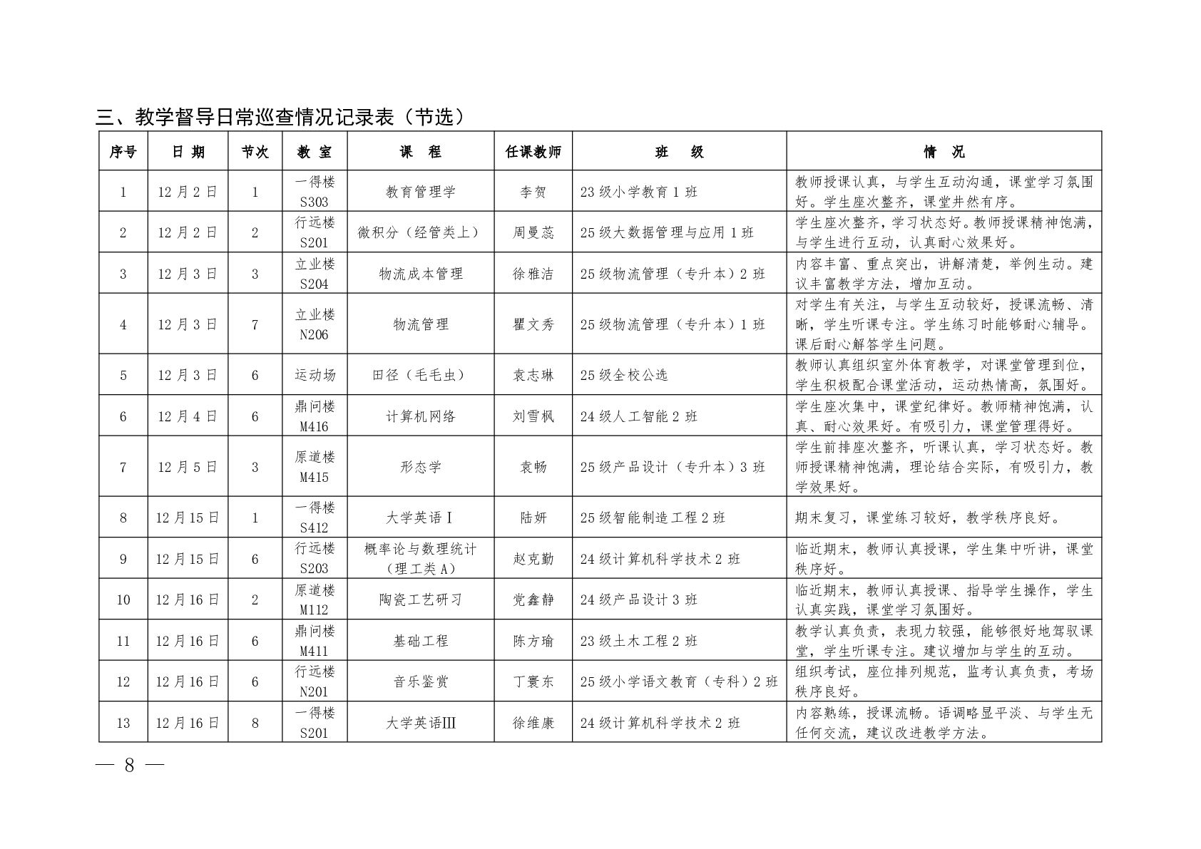 教学质量监控工作简报2025年第8期(总第20期)
